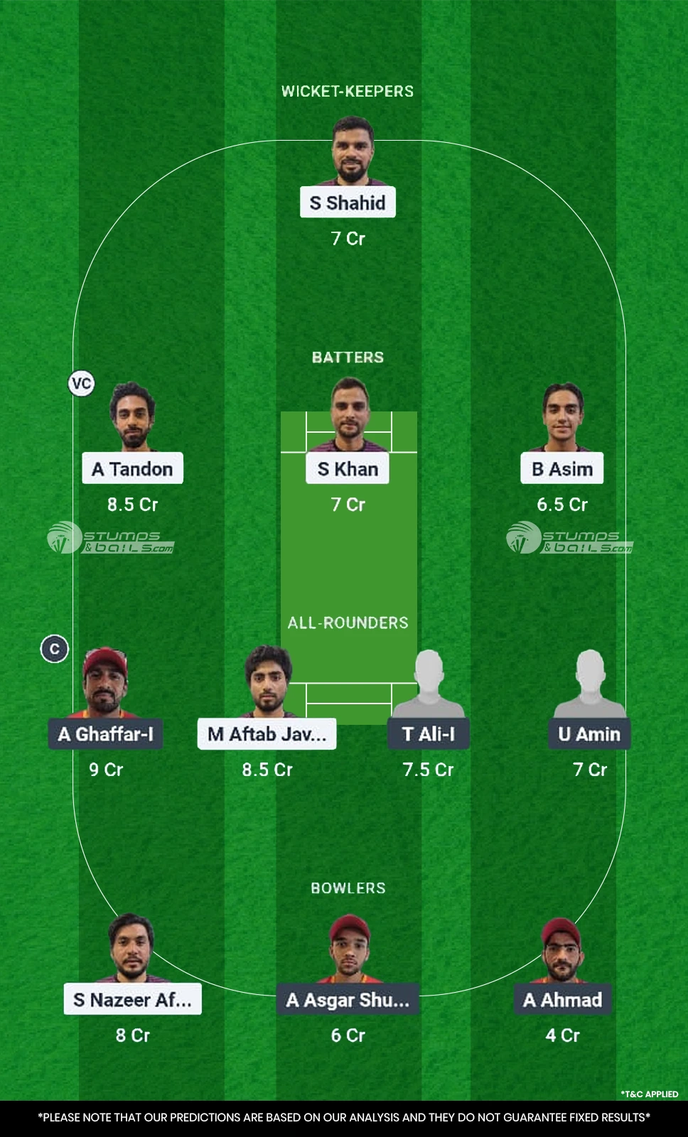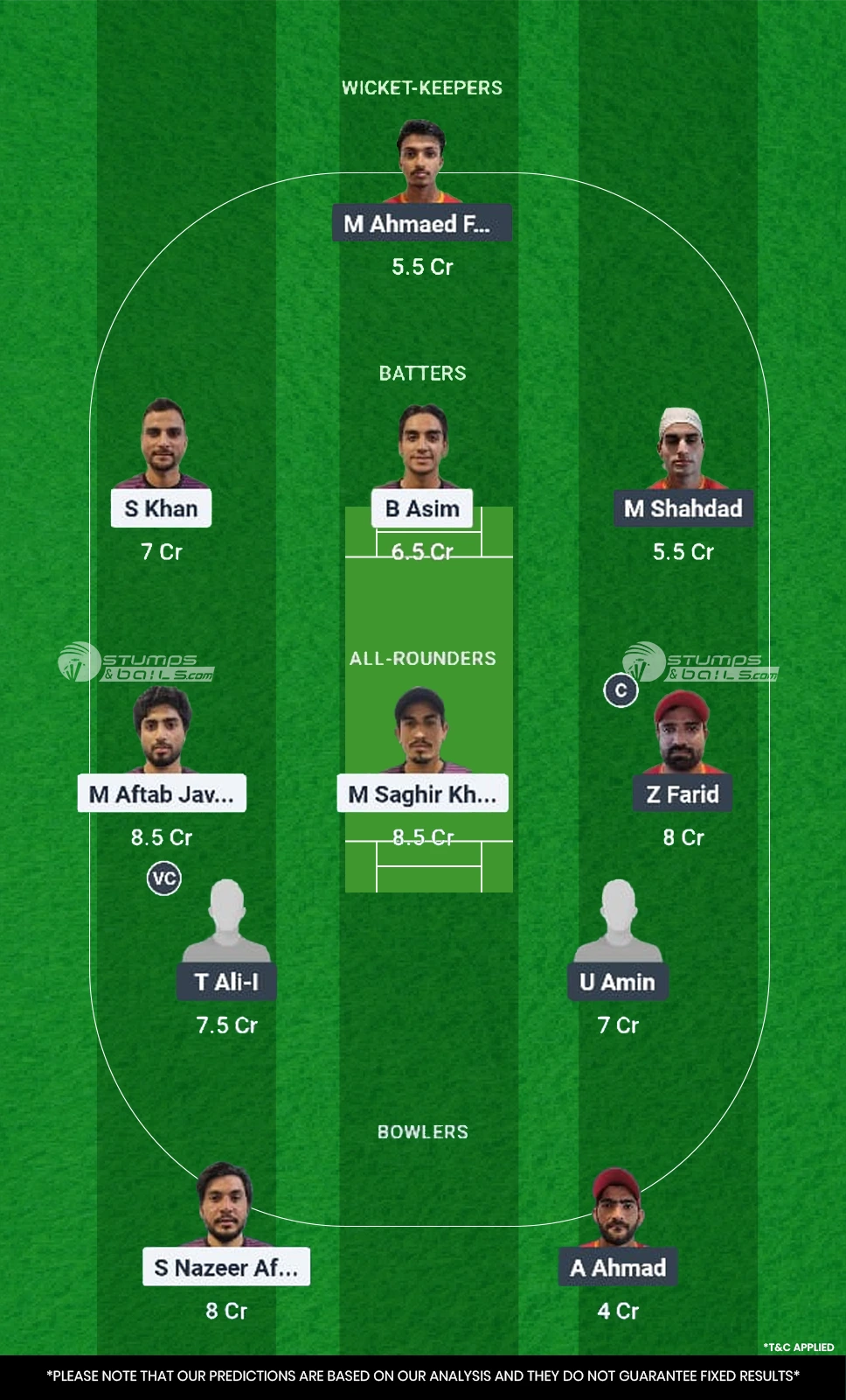 - All-rounders: M Aftab, T Ali-I, U Amin