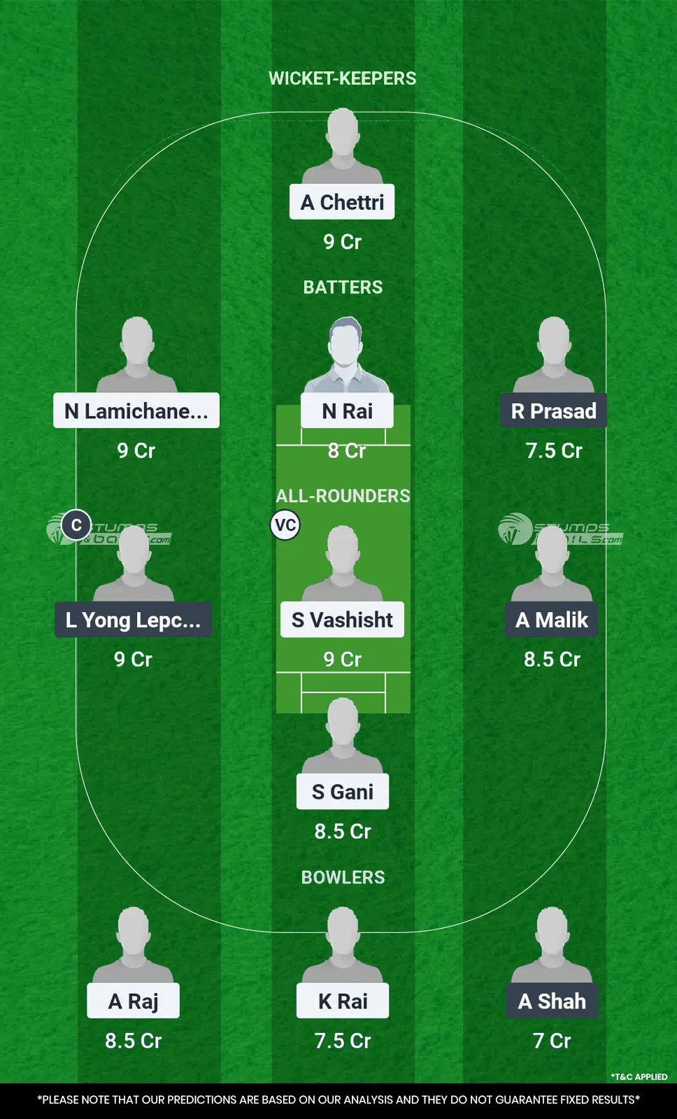 Batsmen: N Lamichaney, N rai, R Prasad