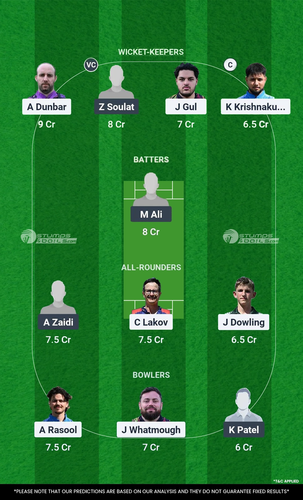 Wicketkeepers K Krishnakumar, Z Soulat, J Gul, A Dunbar