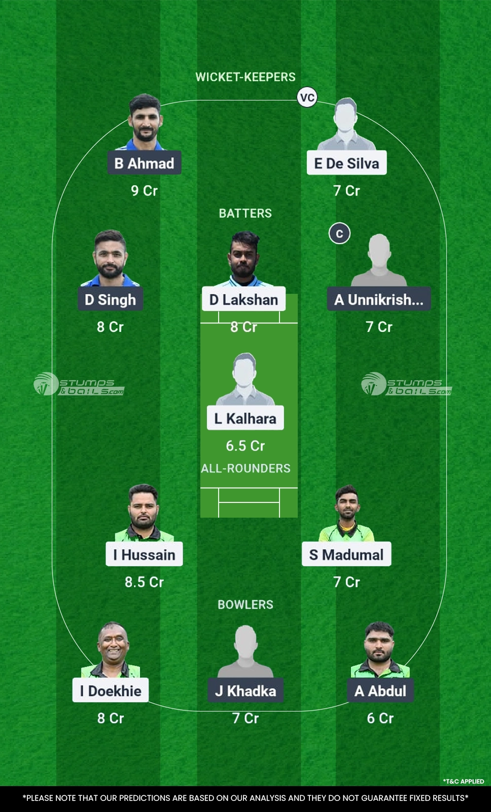 - Batters: D Singh, D Lakshan, A Unnikrishnan, L Kalhara