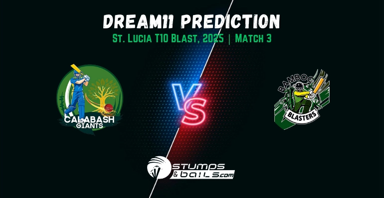 The St. Lucia T10 Blast has approached its 3rd match of the tournament. Calabash Giants and Bamboo Blasters will compete in the Daren Sammy National Cricket Stadium in Gros Islet, West Indies. Therefore, look for the CBG vs BMB Dream11 prediction and fantasy tips for CBG vs BMB Match 3.