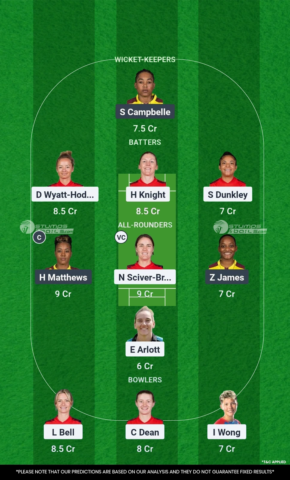 Suggested EN-W vs WI-W Fantasy Team No.1: