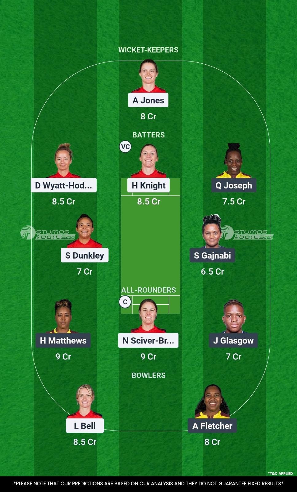 Batsmen: Sophia Dunkley, Heather Knight, Danielle Wyatt-Hodge, Qiana Joseph