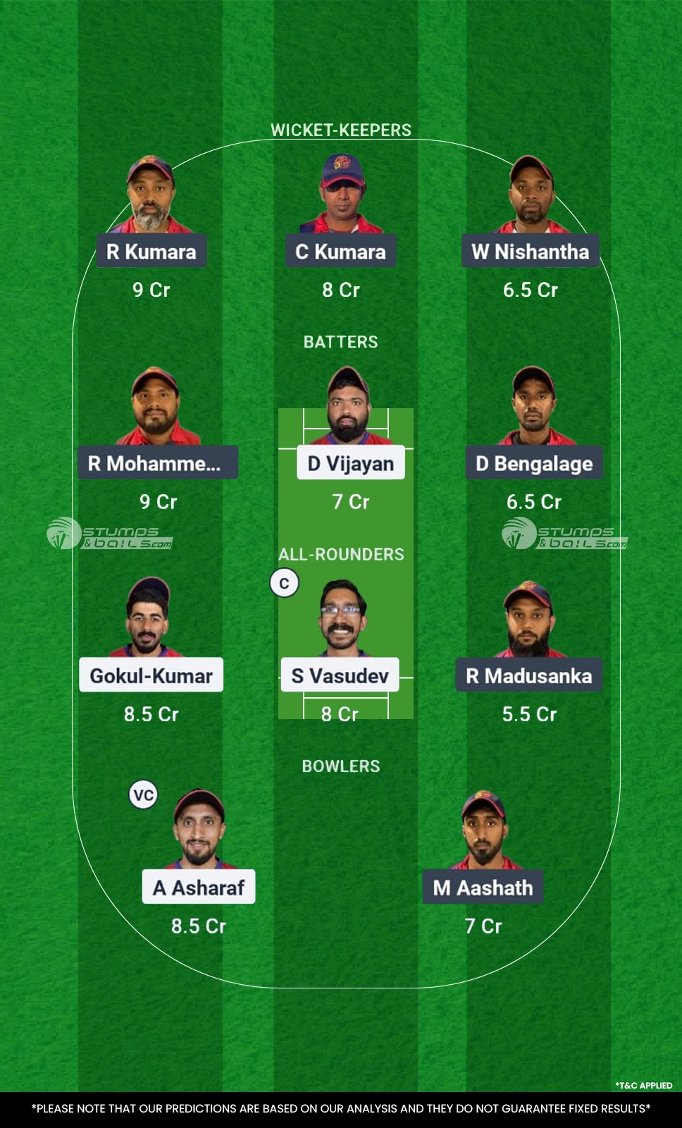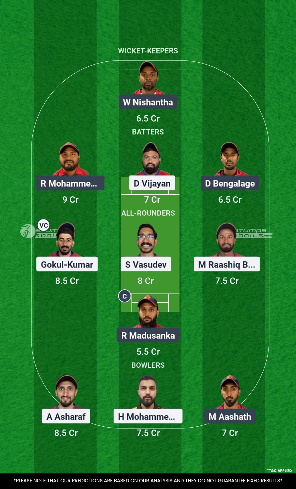 - All-rounders: Gokul-Kumar, S Vasudev, M Raashiq, R Madusanka
