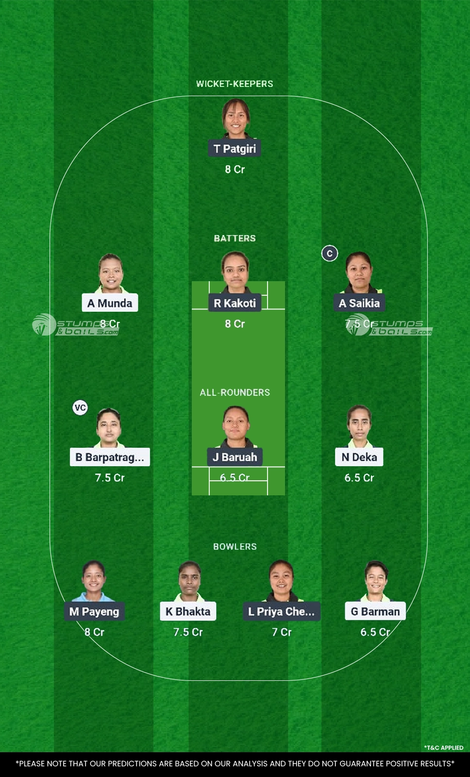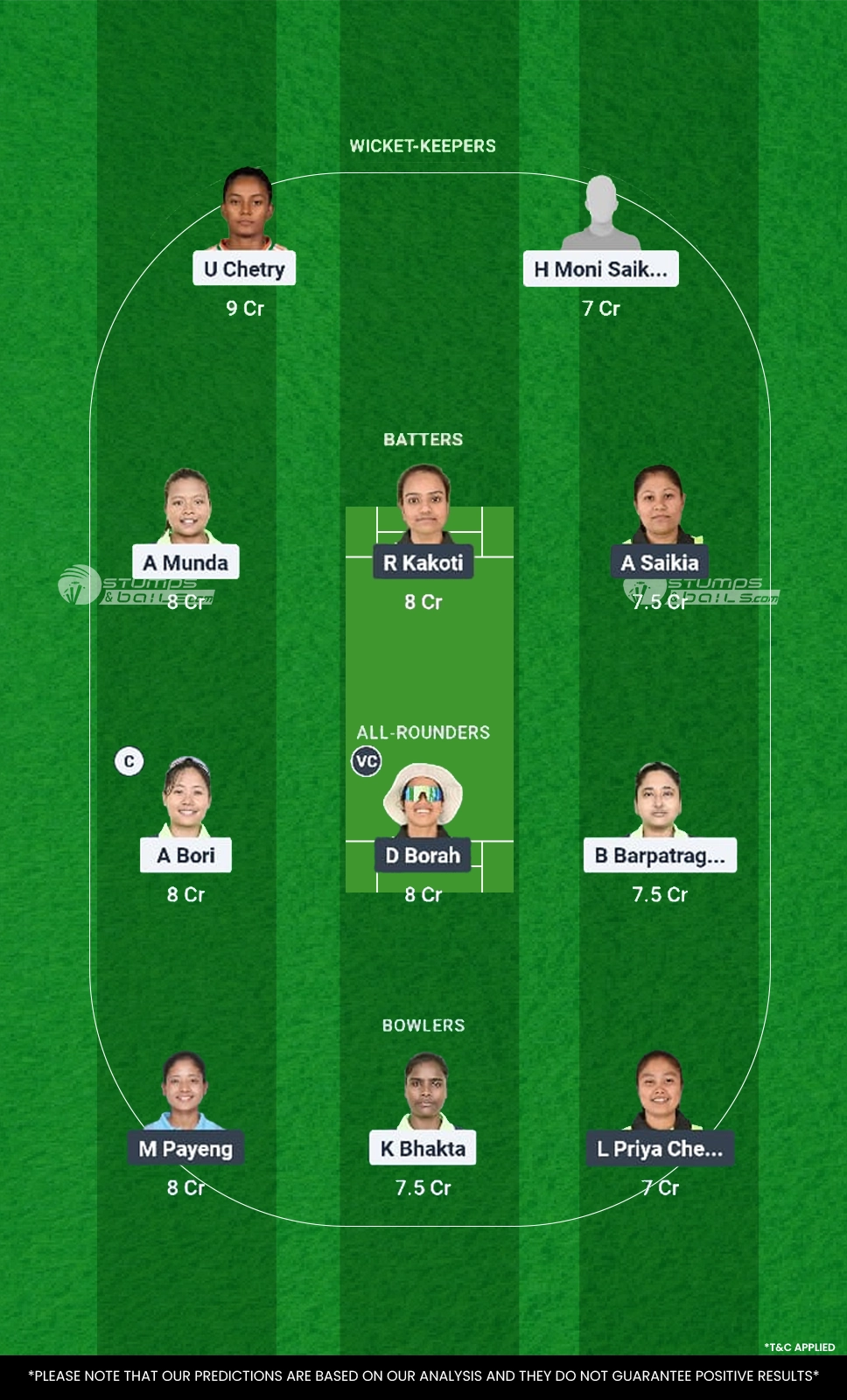 - Bowlers: M Payeng, K Bhakta, L Priya