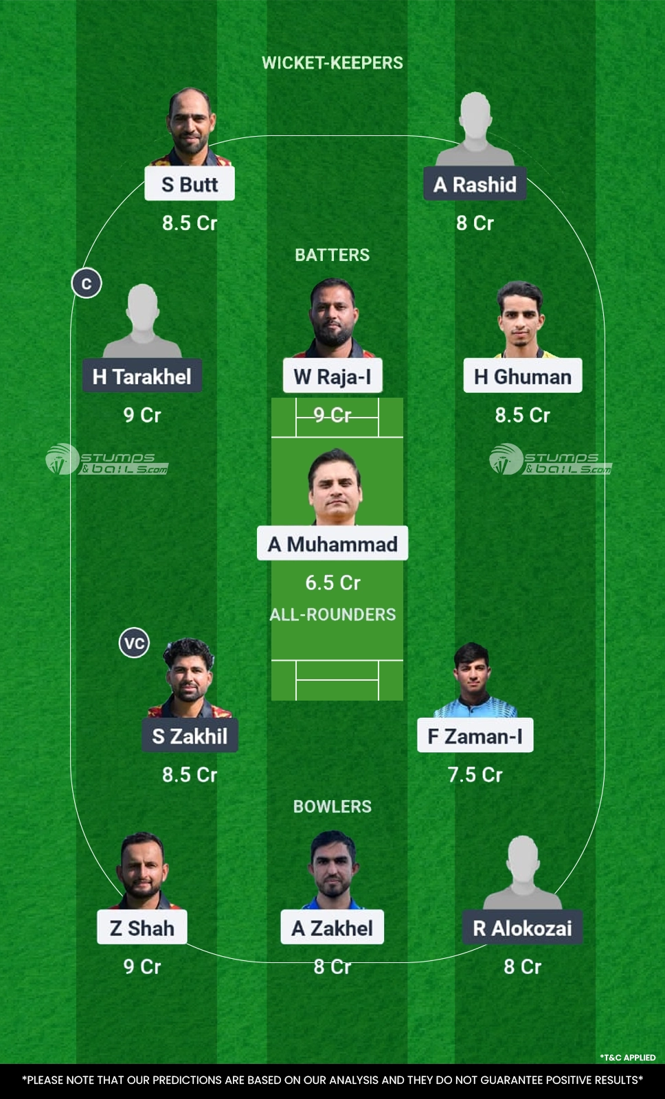 - Batsmen: H Tarakhel, W Raja-I, H Ghuma, A Muhammed