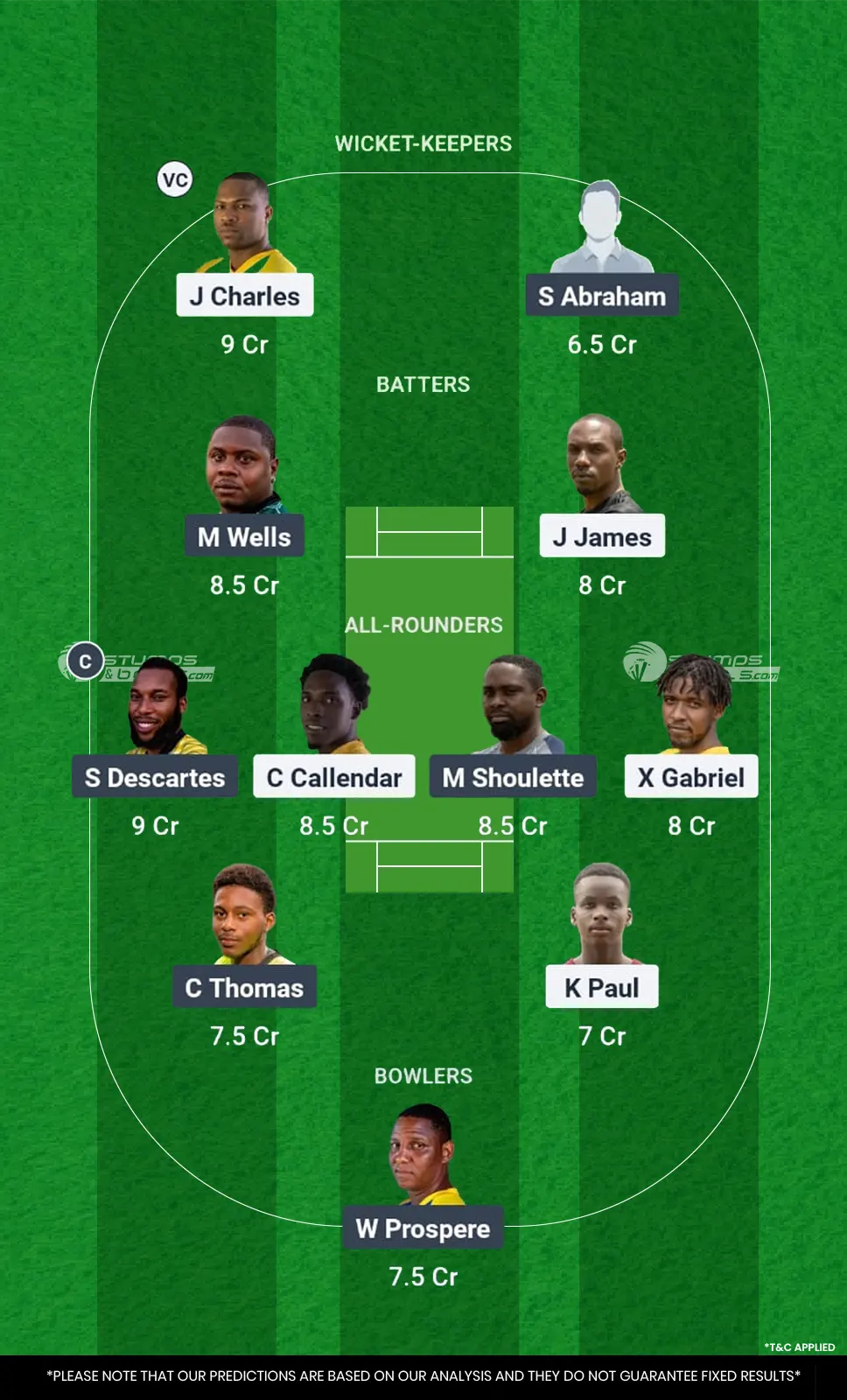 - All-rounders: C Challendar, X Gabriel, S Descartes, M Shoulette, K Paul, C Thomas