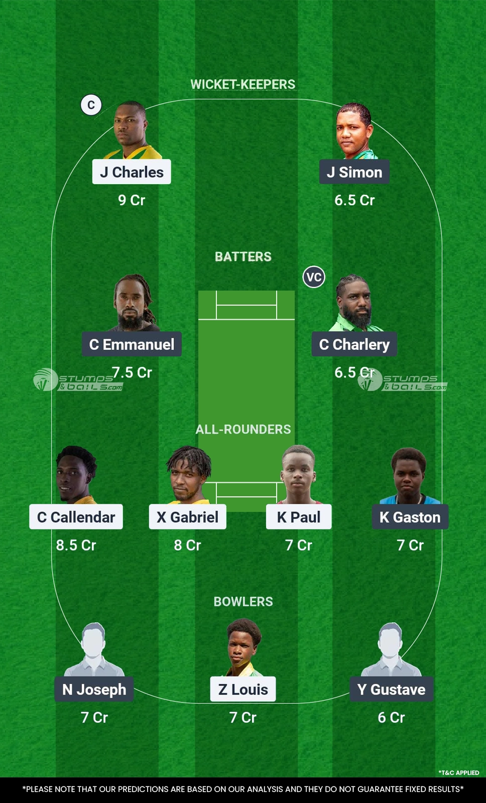 Bowlers: K Jules, Y Gustave, N Joseph, Z Louis