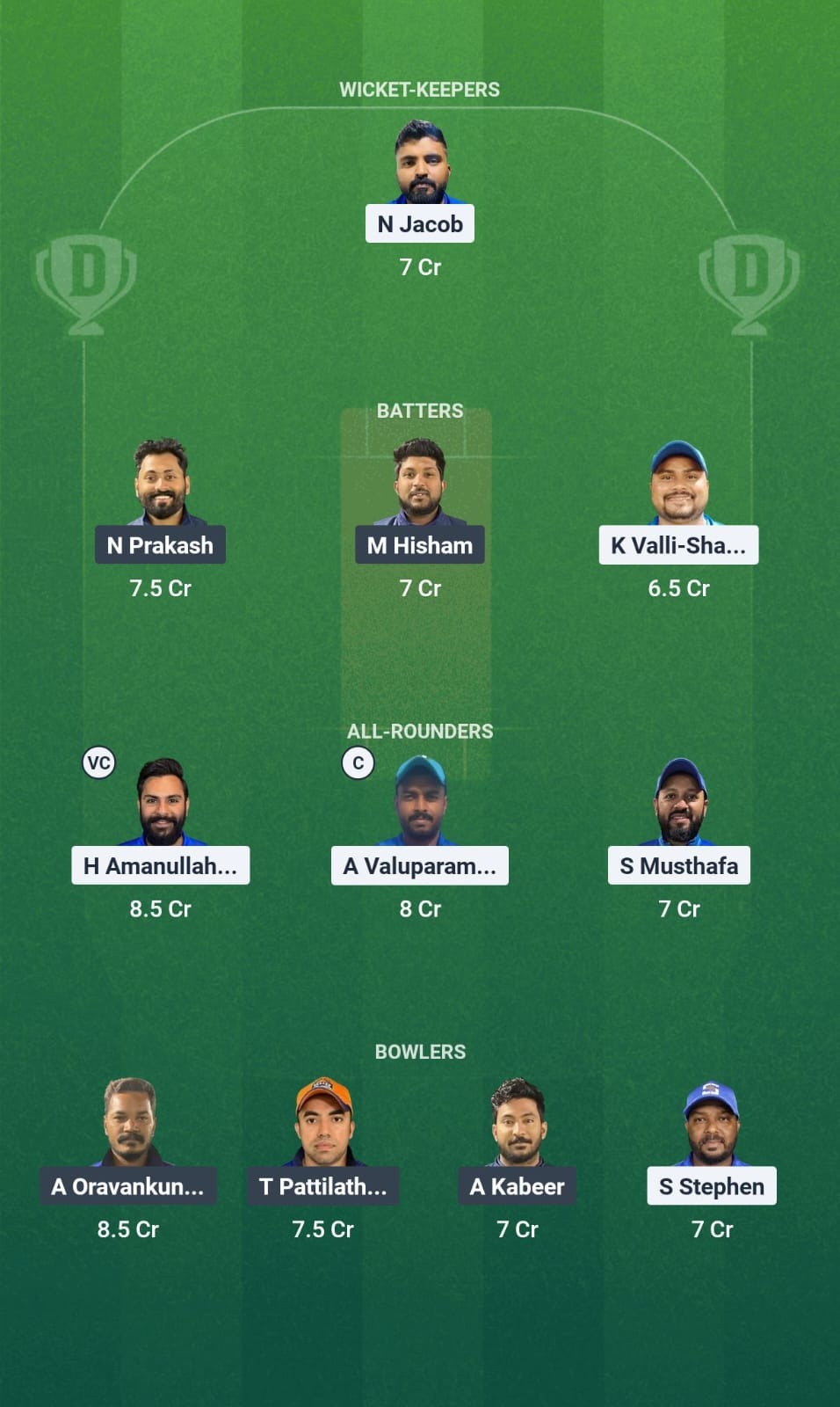 All-rounders: H Amanullah, N Siju-Thomas, S Musthafa