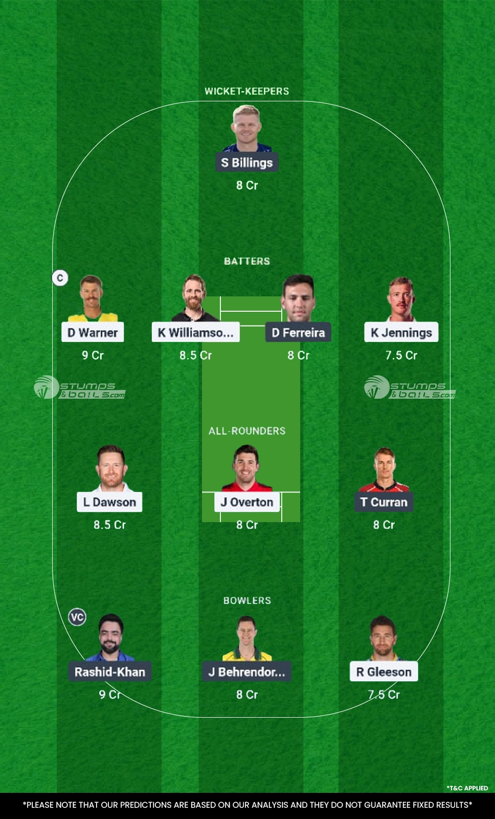 - Batsmen: D Warner, K Williamson, D Ferreira