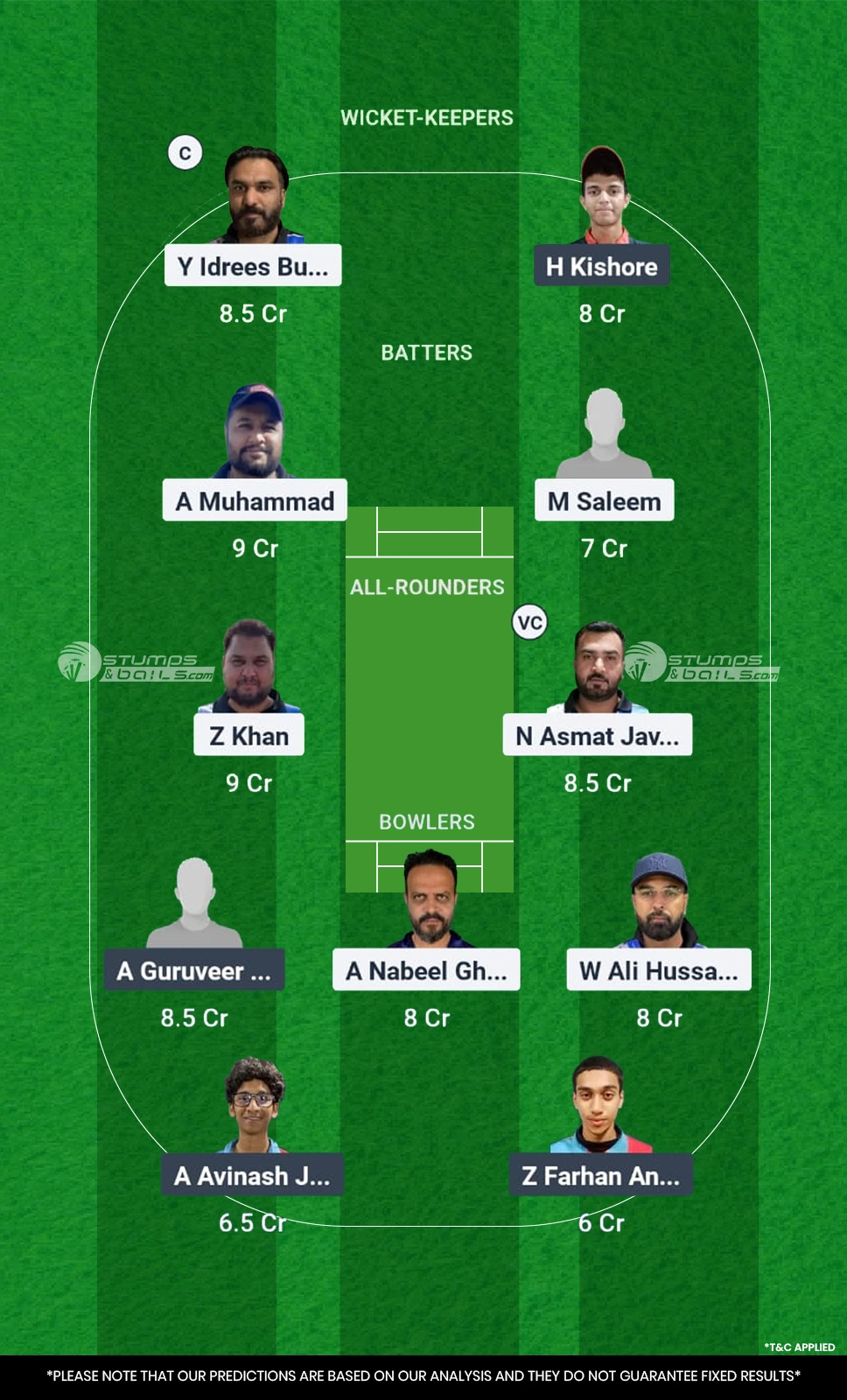 Arpeet Avinash (C), Het Kishore, Jude Saldanha (WK), Vihaan Jitesh, Ummer Abbas, Rudransh Panchal, Asmeet Avinash, Pradyot Giri, Ali Abbas, Rayan Aiden, Zurain Farhan Ansari