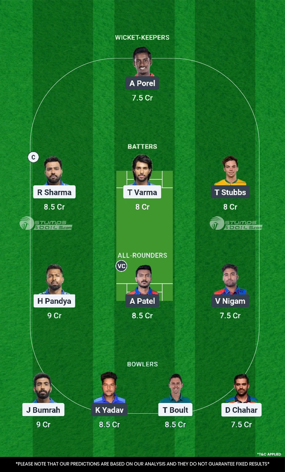 What is the best fantasy cricket team for today’s MI vs DC match?