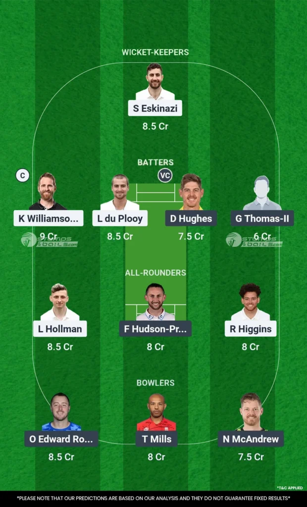 Stephen Eskinazi (c), Jack Davies (wk), Kane Williamson, Leus du Plooy, Ben Geddes, Josh De Caires, Ryan Higgins, Zafar Gohar, Luke Hollman, Tom Helm, Noah Cornwell