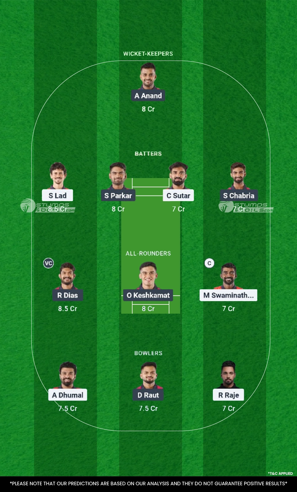 Akash Anand, Adeeb Usmani, Suved Parkar, Vikrant Auti, Sagar Chabria, Karsh Kothari, Royston Dias, Om Keshkamat, Dhrumil Matkar, Dhanit Raut, Parth Ankolekar