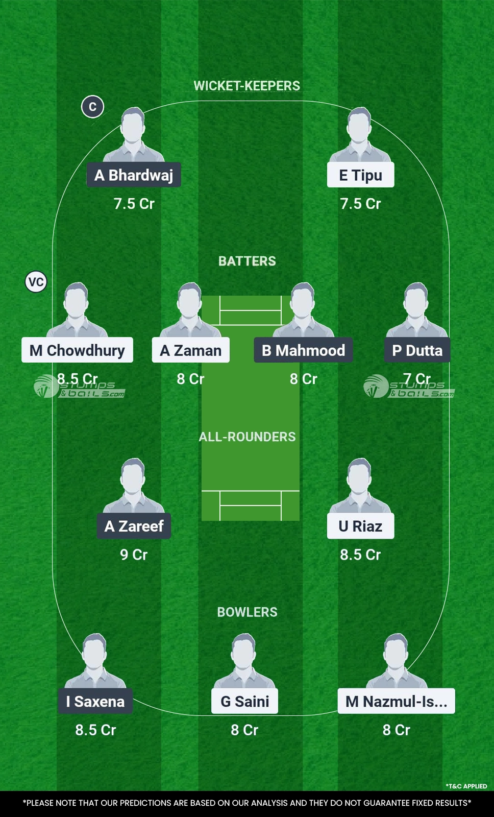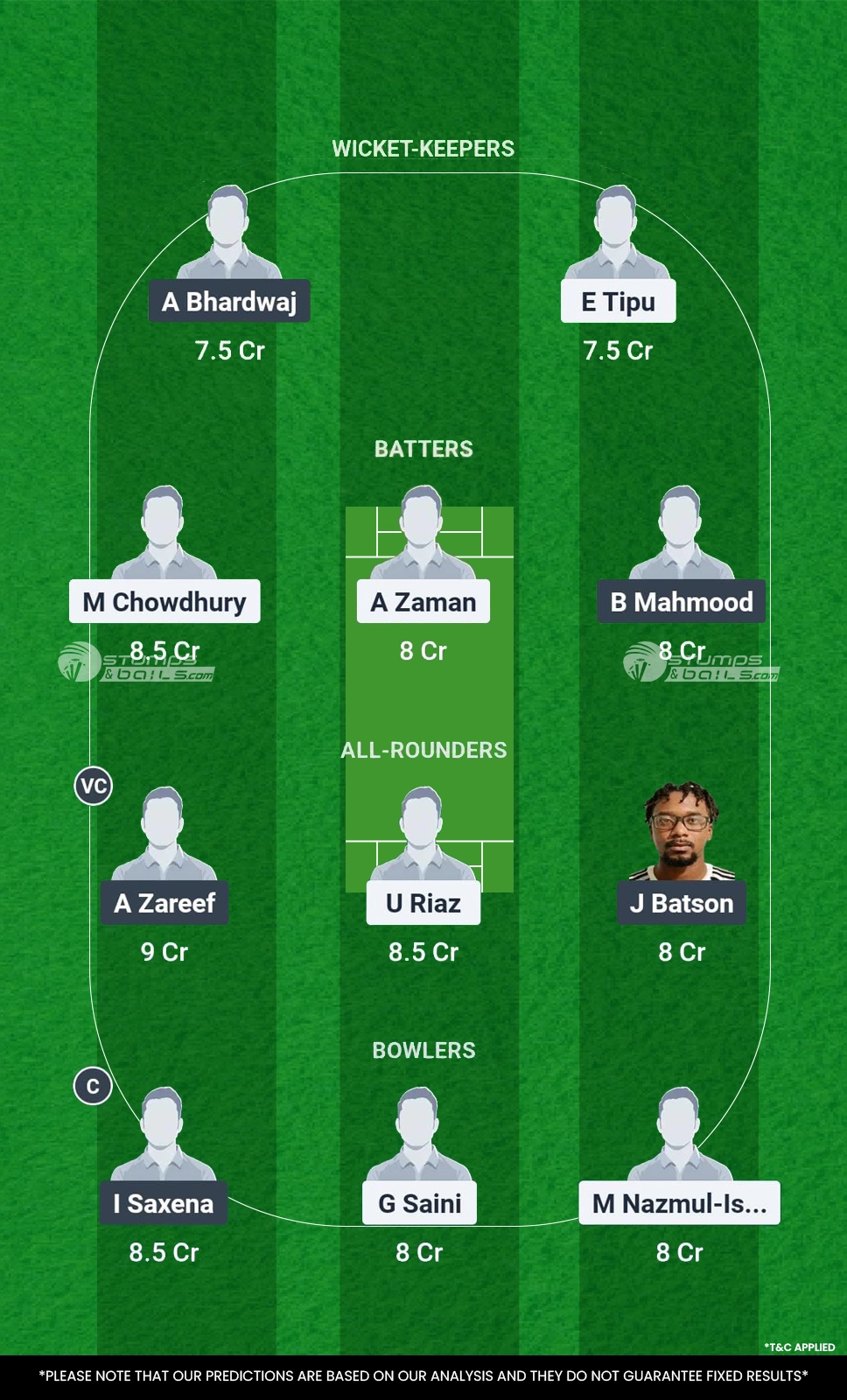 Batsmen: M Chowdhury, A Zaman, D Mahmood
