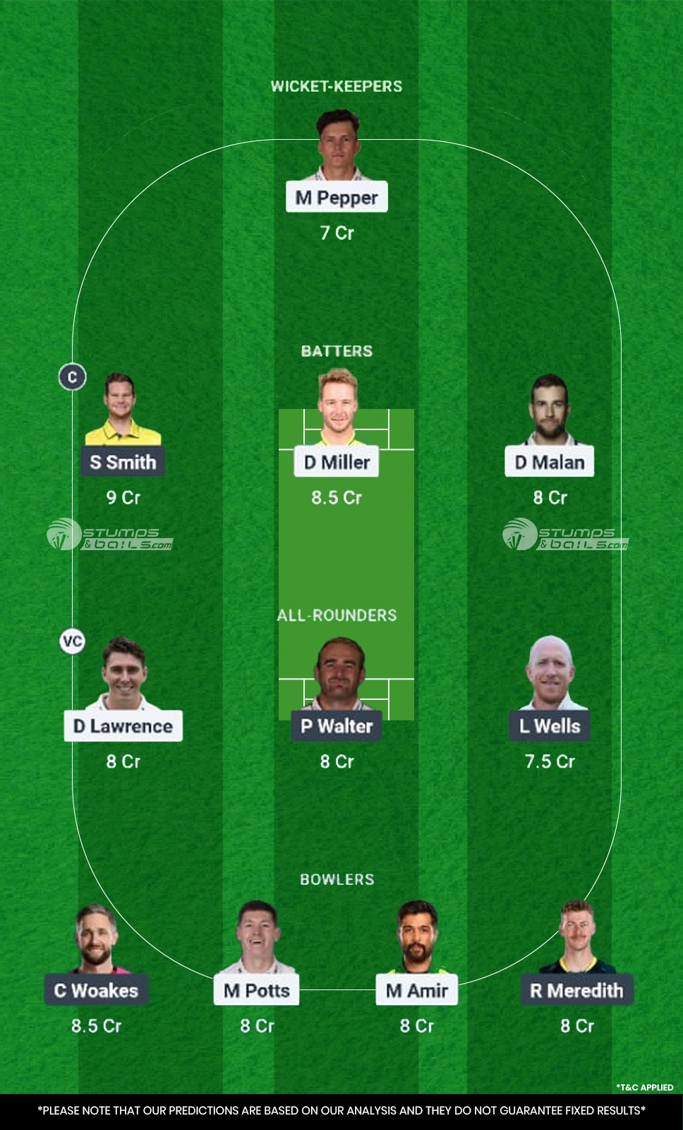 Steve Smith, Jonny Bairstow (Wicket-keeper), Stephen Eskinazi, Tom Kohler-Cadmore, Tom Abell (Captain), Luke Wells, Paul Walter, Chris Green, David Payne, Riley Meredith, Mason Crane