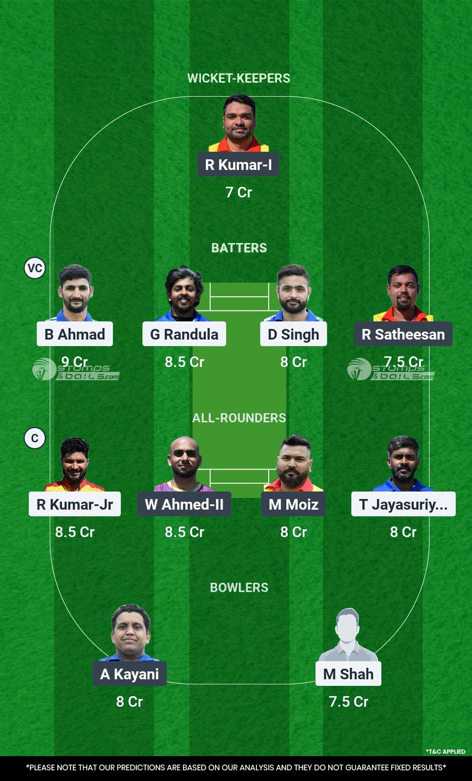 Batsmen: B Ahmad, G Randula, D Singh, R Satheesan