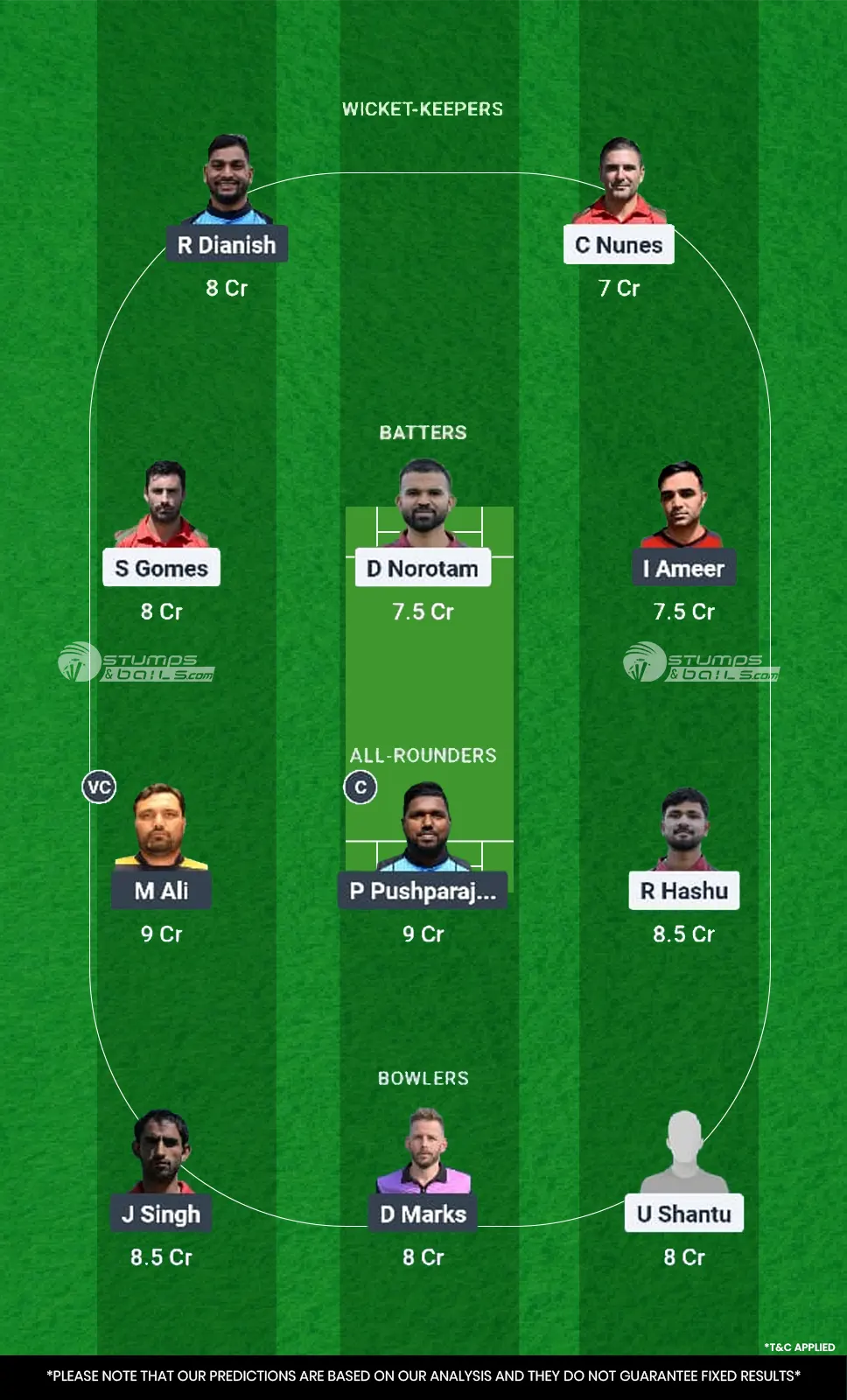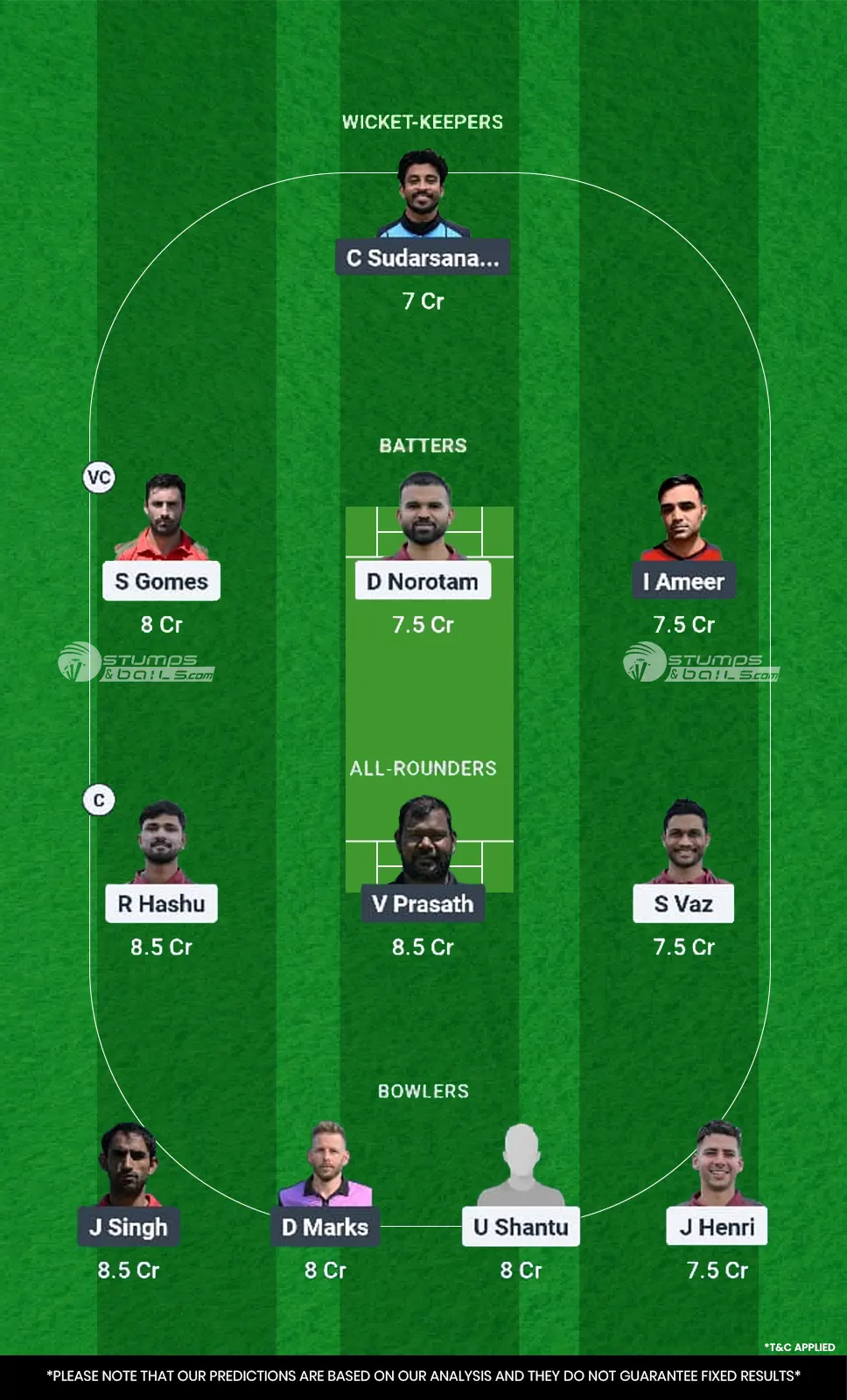 - Batsmen: S Gomes, D Norotam, I Ameer