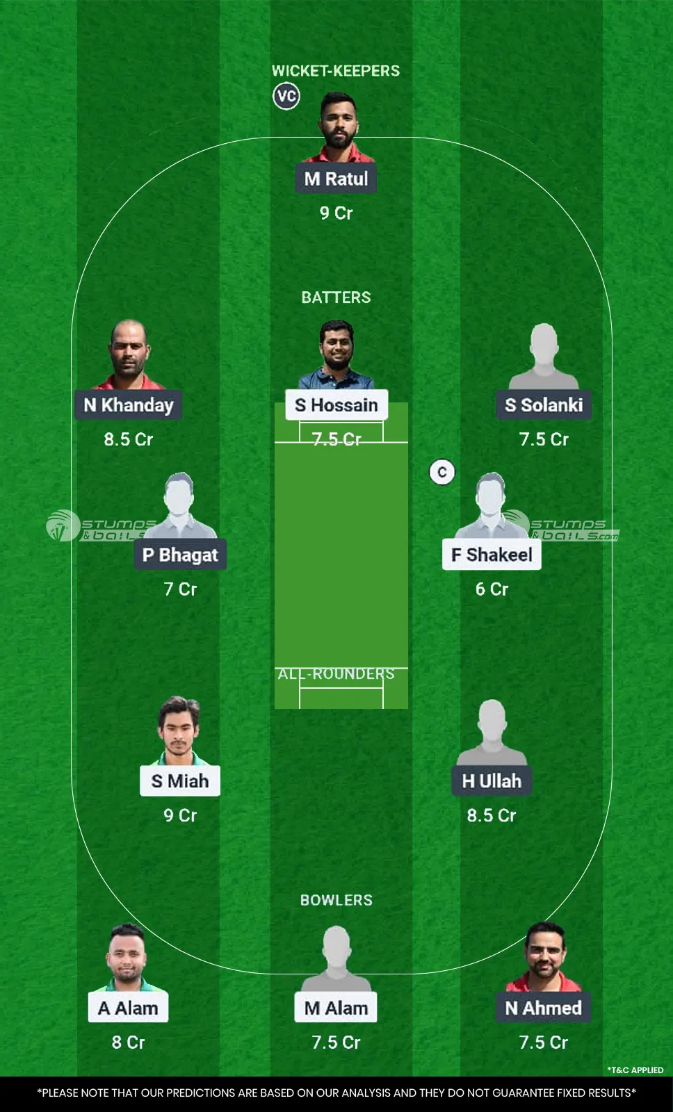 - Batters: N Khanday, S Hossain, S Solanki, P Bhagat