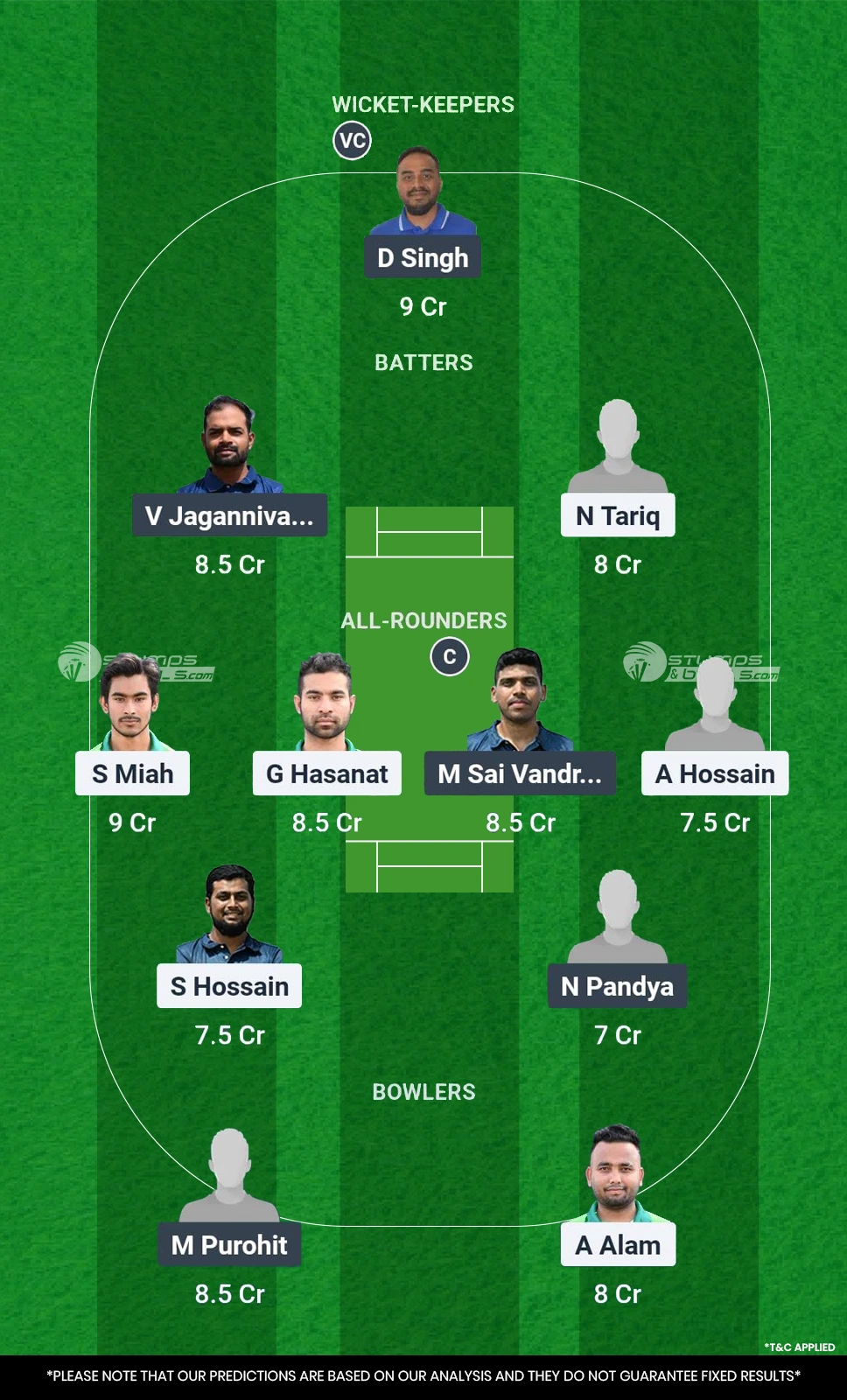 Stack your fantasy team with 2-3 all-rounders from both sides. Make Mayank Purohit or Sagor Hossain your vice-captain for differential returns.