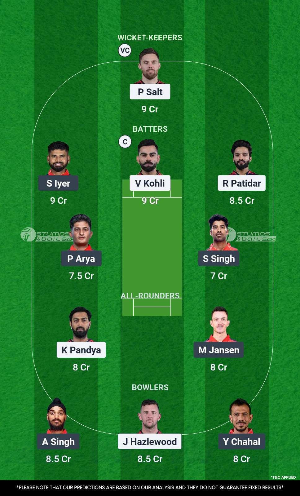 RCB vs PBKS फैंटेसी टीम 1