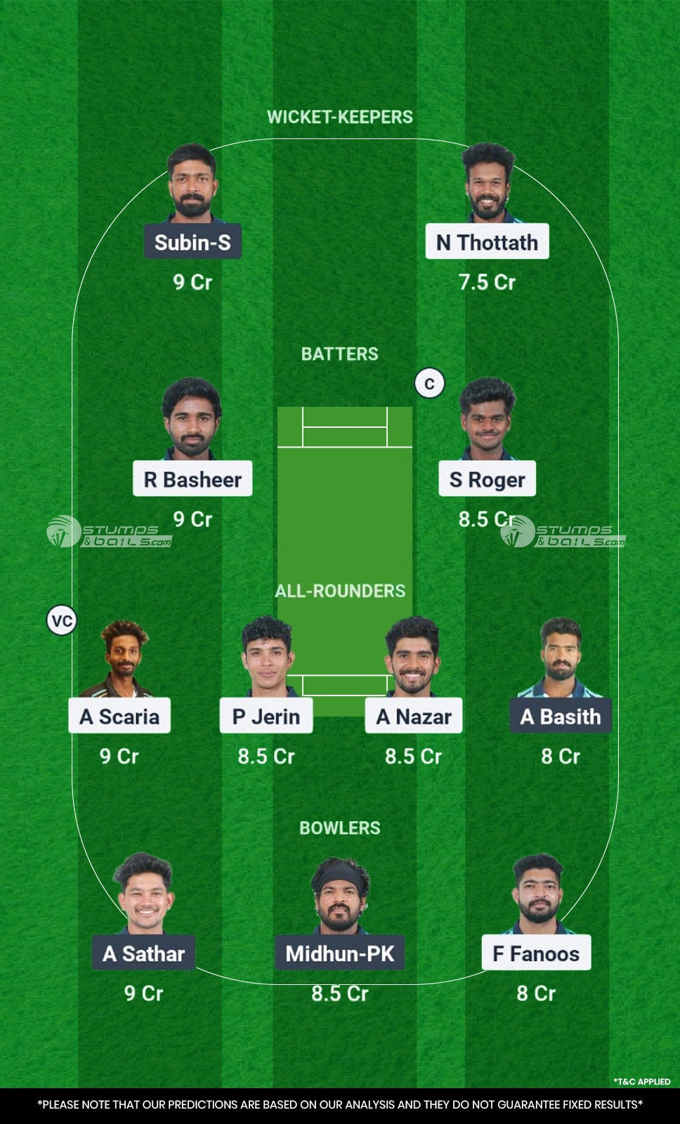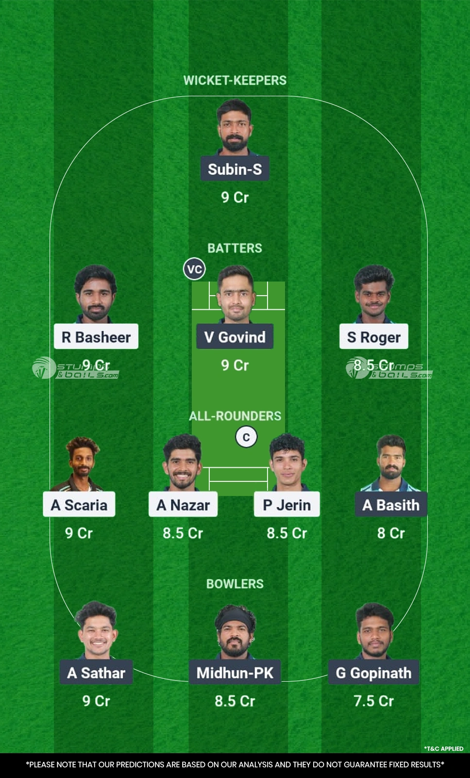 - All-rounders: A Scaria, P Jerin, A Nazar, A Basith