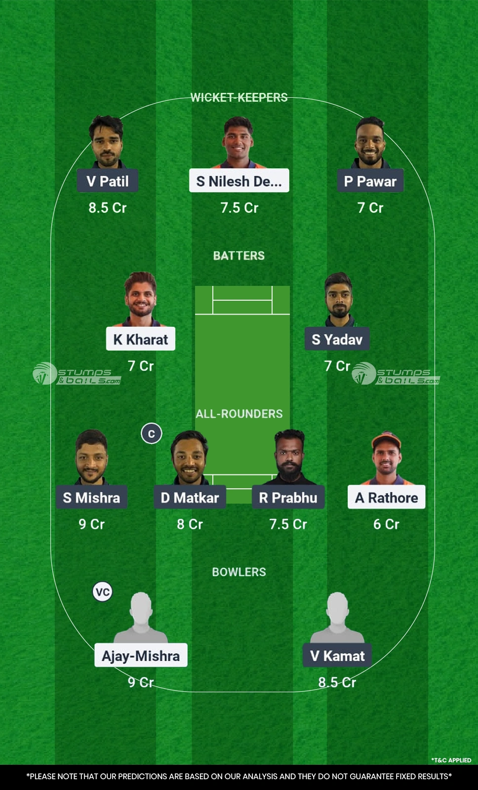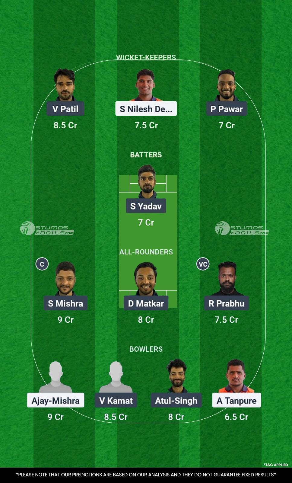 - All-rounders: S Mishra, D Matkar, R Prabhu