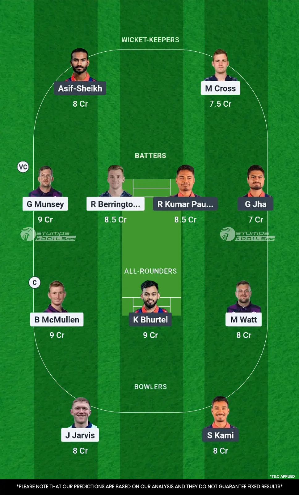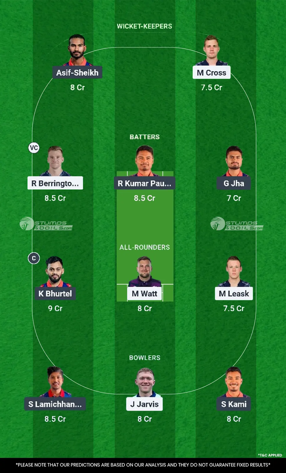 What is the best fantasy cricket team for today’s SCO vs NEP match?