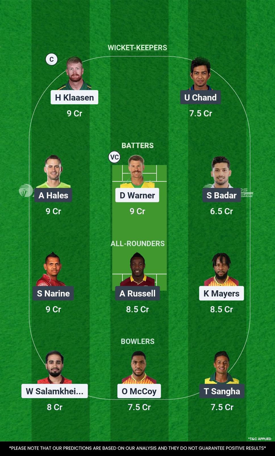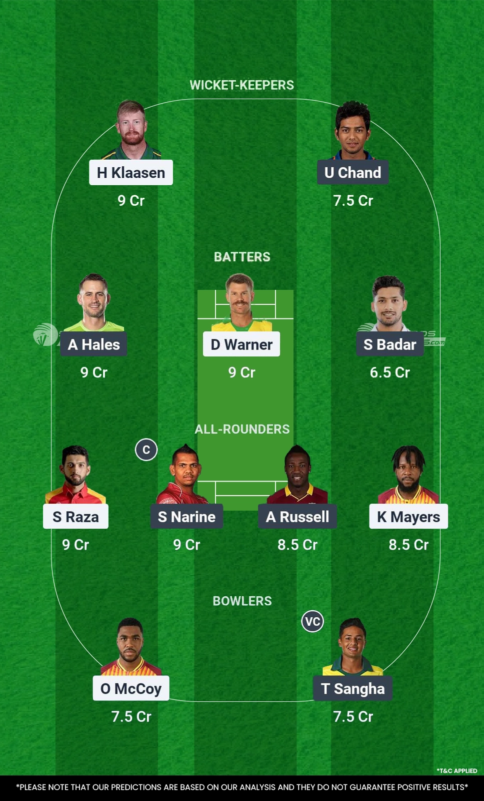 All-rounders: K Mayers, S Narine, S Raza, A Russell