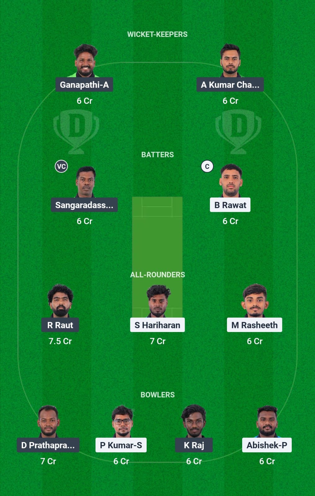 - Bowlers: D Prathapraj, P Kumar-S, K Raj, Abisek-P