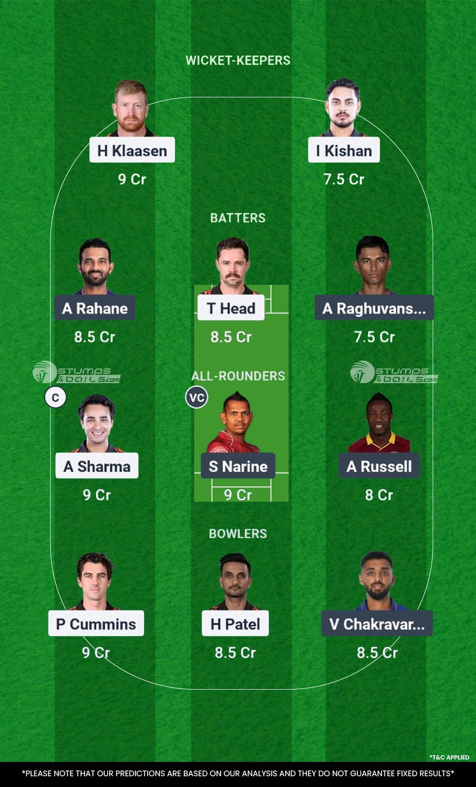 - Batsmen: A Rahane, T Head, A Raghuvanshi