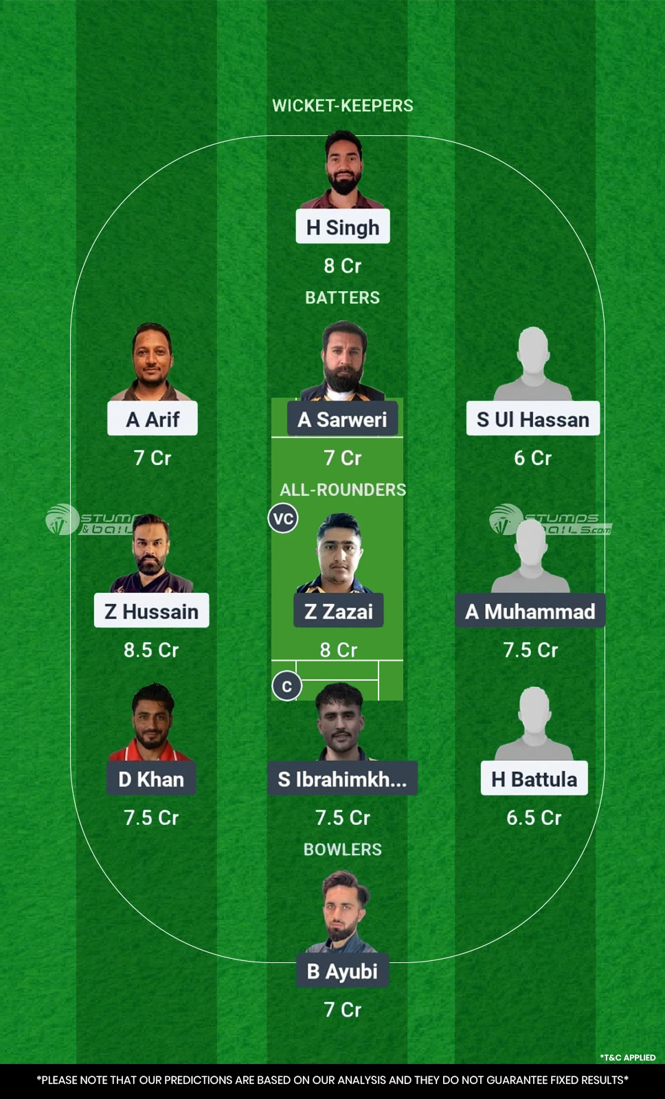 - All-rounders: Z Zazai, A Muhammad, D Khan