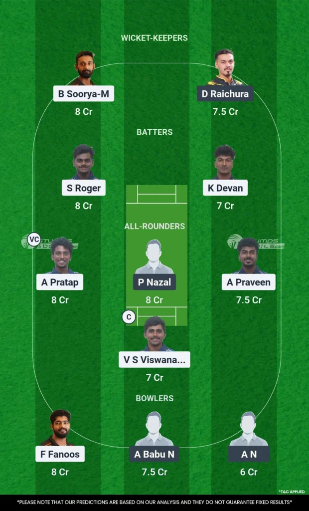 TVR vs KOD Dream11 Prediction for match 15 of Kerala Mens T20 Challenger Trophy