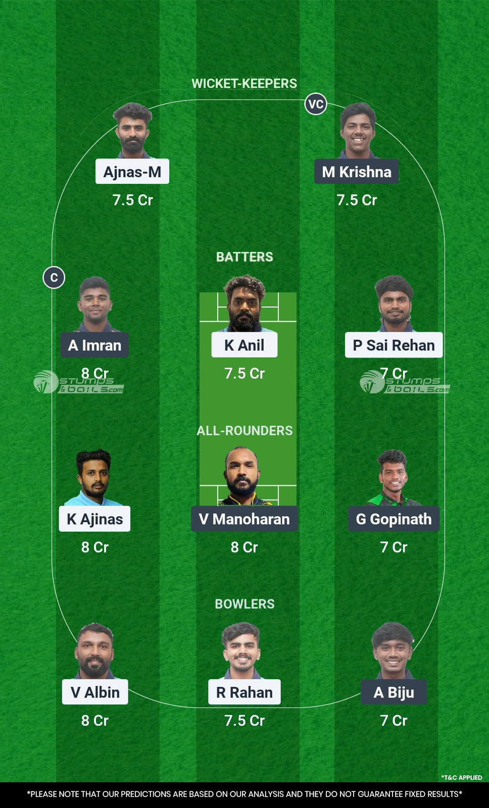 WAN vs CDS Dream11 Prediction for Match 29 of Kerala Mens T20 Challenger Trophy