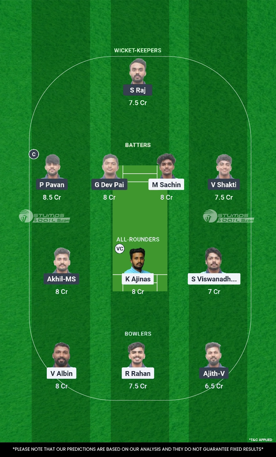 - Bowlers: V Albin, R Rahan, Ajith-V