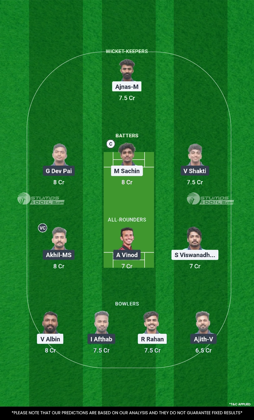 - Batters: M Sachin, G Dev Pai, V Shakti