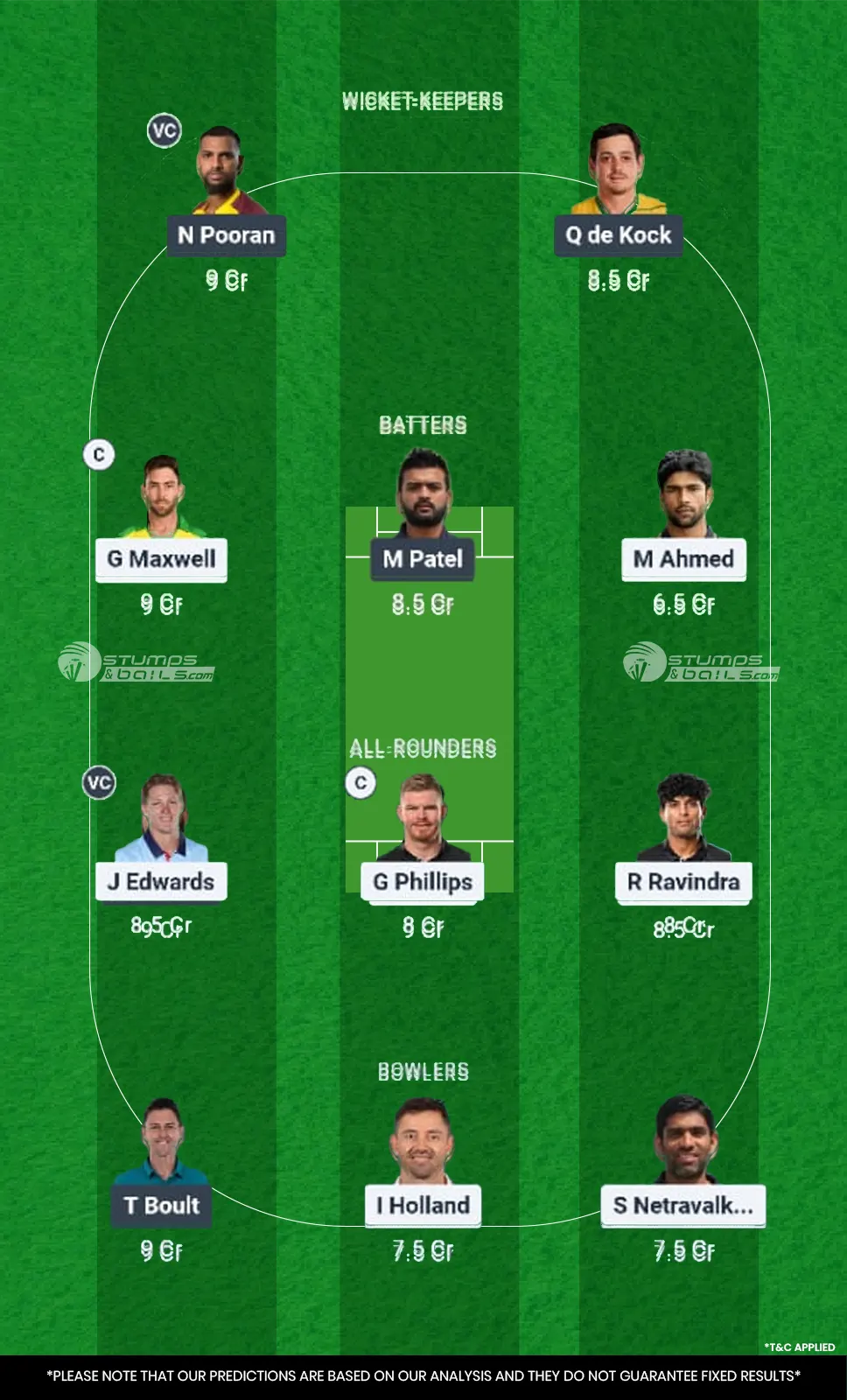 - Bowlers: T Boult, I Holland, S Netravalkar