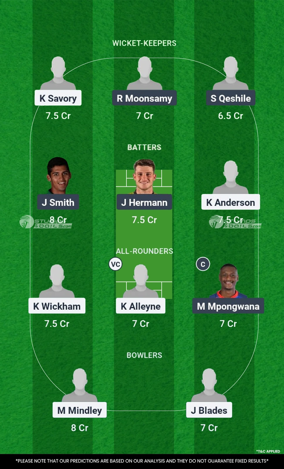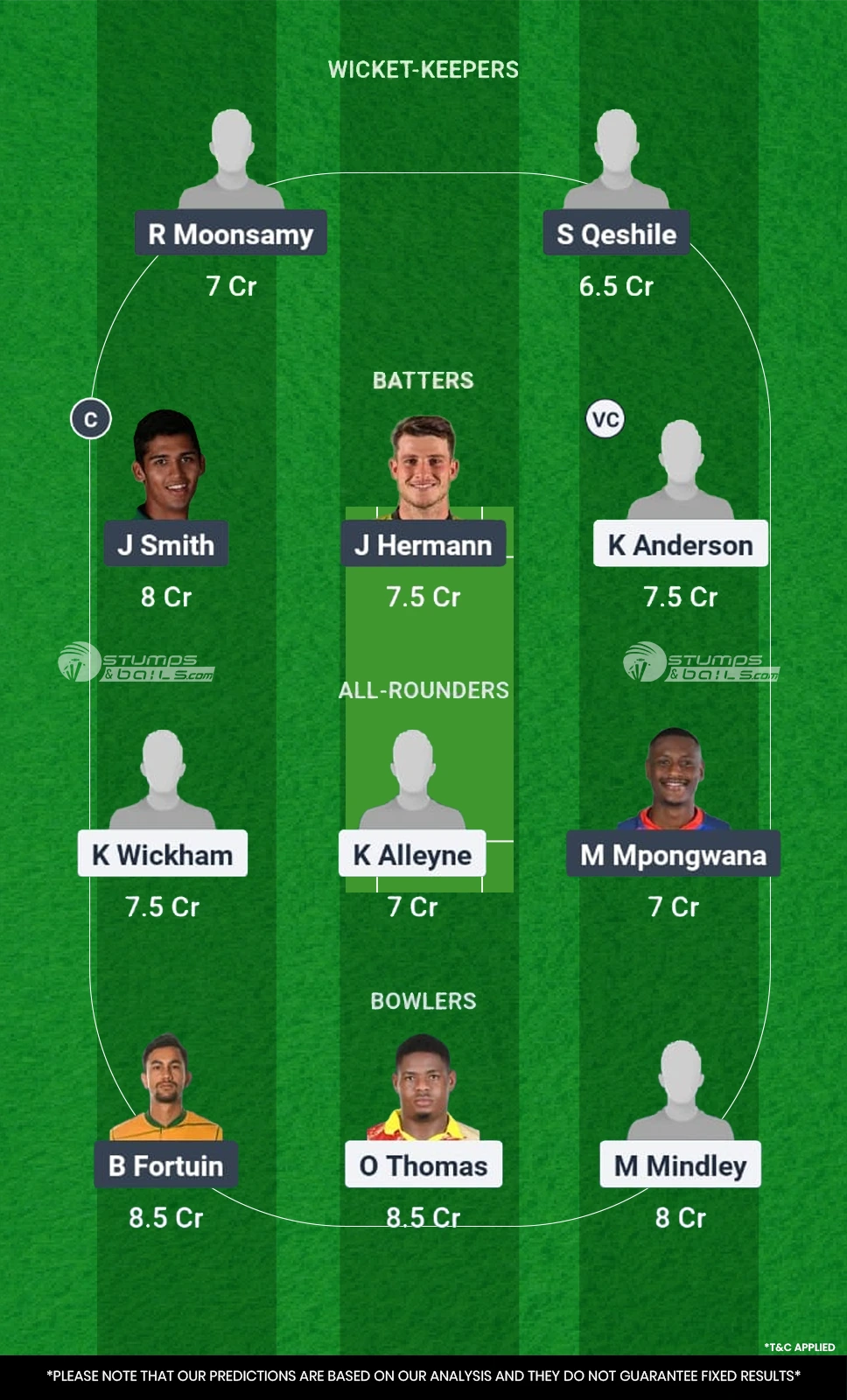 Lesego Senokwane, Rivaldo Moonsamy, Jordan Hermann, Marques Ackerman(c), Sinethemba Qeshile(w), Jason Smith, Mihlali Mpongwana, Bjorn Fortuin, Tristan Luus, Tshepo Moreki, Okuhle Cele