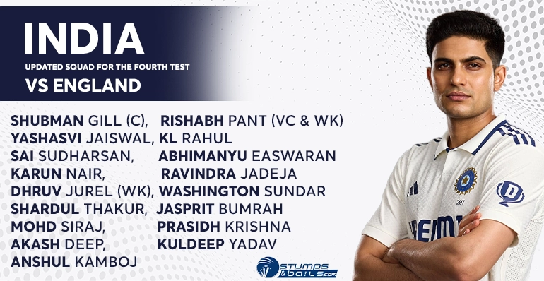 India Squad Update for 4th test of India Tour of England 2025