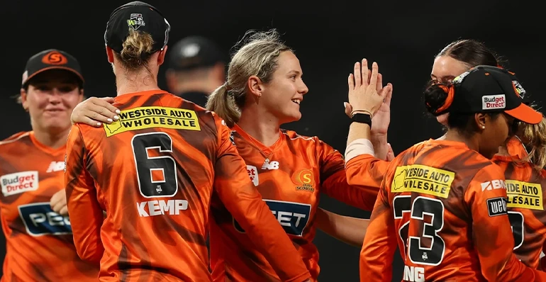 Put in to bat on a used surface, the Sydney Sixers Women leaned once more on the big-game temperament of captain Ellyse Perry, who anchored the innings with a composed knock through the middle overs. Partnering her at the top, Sophia Dunkley provided the early surge, unfurling crisp drives and powerful pulls to keep the Powerplay run rate healthy and immediately put the Perth attack under pressure. The pair’s contrasting styles forced the Scorchers to reshuffle their lengths, with the spinners struggling to grip and contain as Dunkley targeted the straight boundary. Regular strikes at the other end momentarily checked momentum, but Perry’s calm rotation of the strike and ability to cash in on mistakes at the death ensured the Sixers closed on a total that was above par for conditions and, crucially, gave their bowlers a real score to defend.